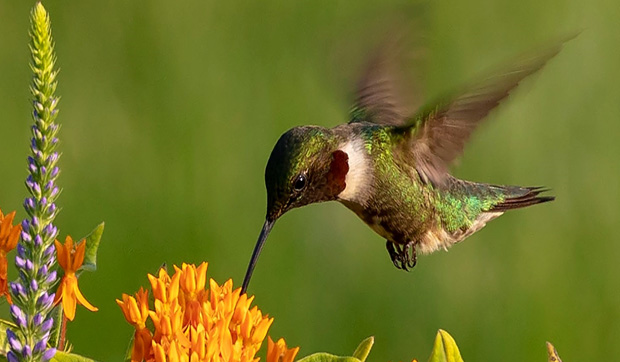 Mother Nature makes it best: A ruby-throated hummingbird (Archilochus colubris) samples the nectar at a butterfly milkweed (Asclepias tuberosa) also known as butterflyweed.